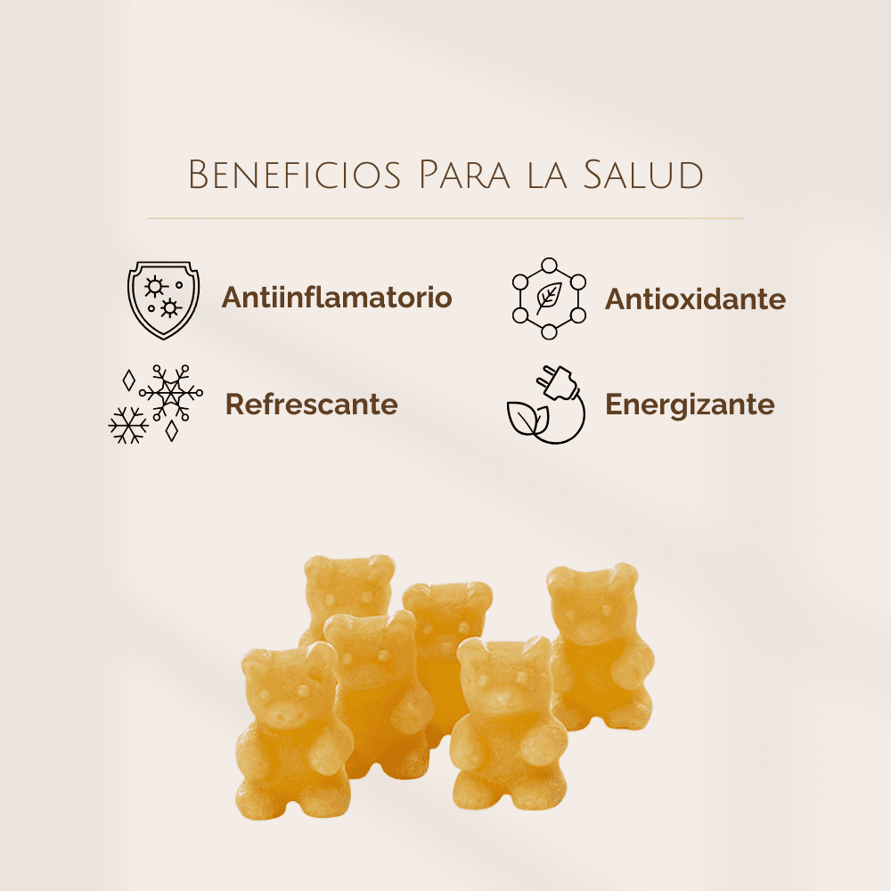 Elaborados con extracto de té blanco, jengibre, zumos de frutas concentrados (uva, manzana, pera, albaricoque), aromas naturales y una base de gelatina, estos ositos no solo encantan por su sabor, sino también por su suavidad y efecto revitalizante.