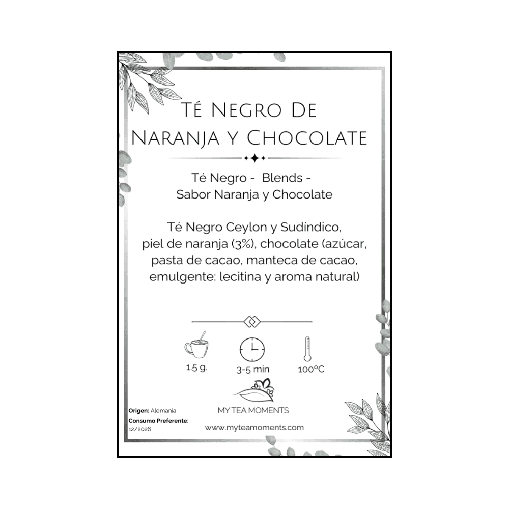 Té Negro de Naranja y Chocolate – Infusión intensa con notas cítricas y dulces. Energizante, antioxidante y perfecta para momentos especiales. 🍊🍫